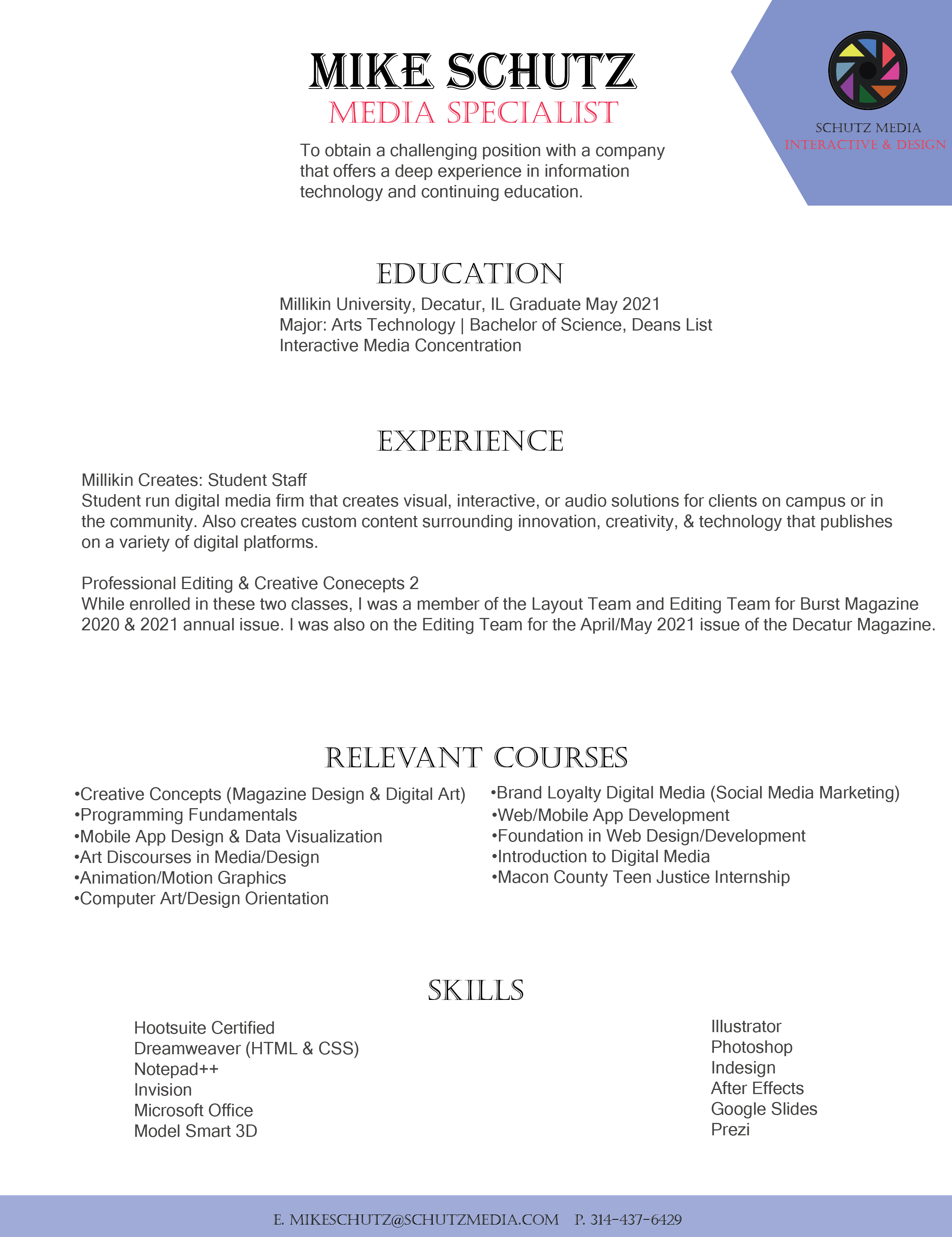 Feel free to check out my website with projects I have made for clients, class work, and personal work. You will be seeing work in the three following fields: web development/design,